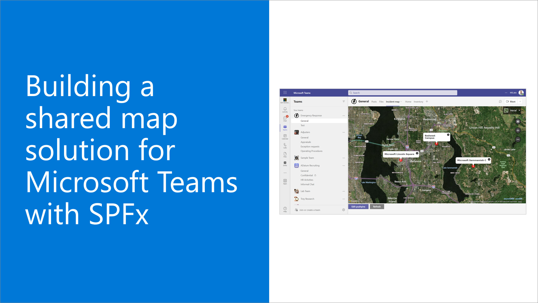This is live and uses the component you linked to as well as querying the Bing location API to get long lat from the office location associated with our team members