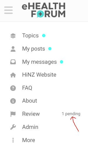 This is usually to approve a new member to the HiNZ eHealth Forum. Occasionally it might be a post that someone has flagged as being inappropriate or a post requiring moderator approval.