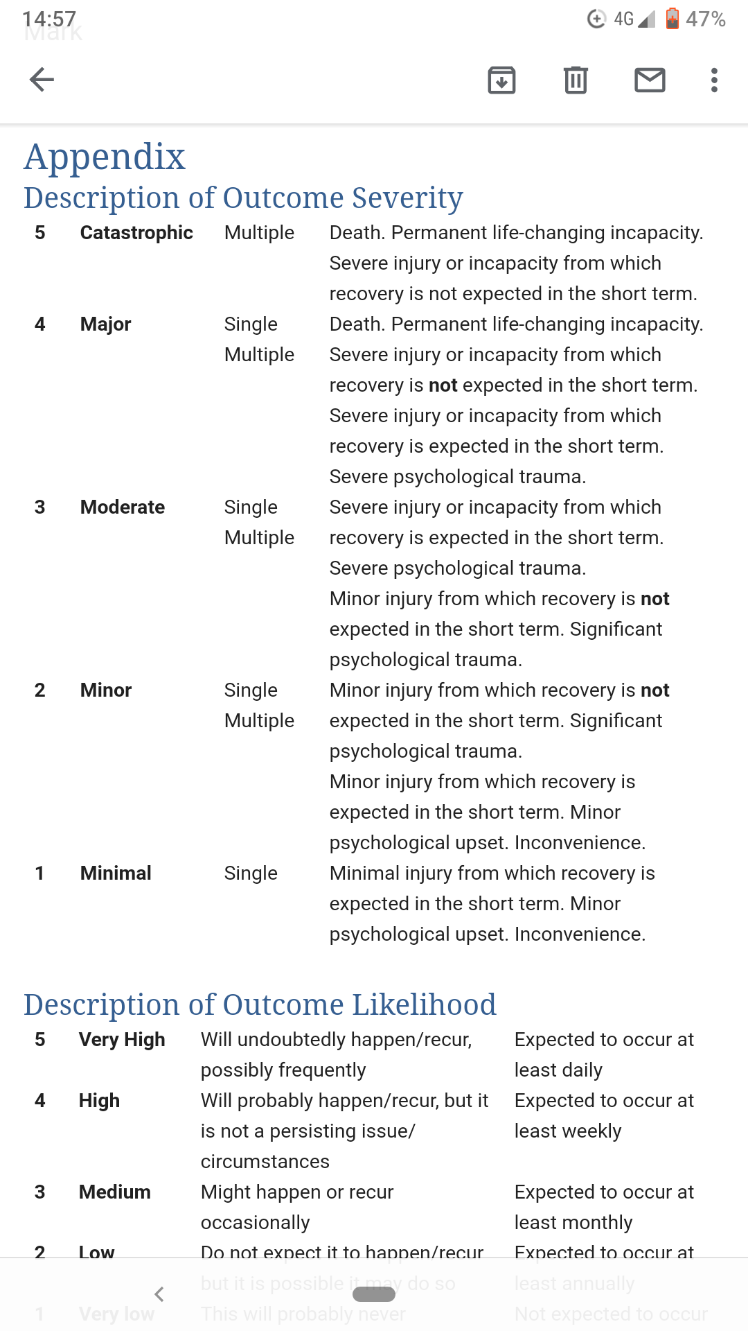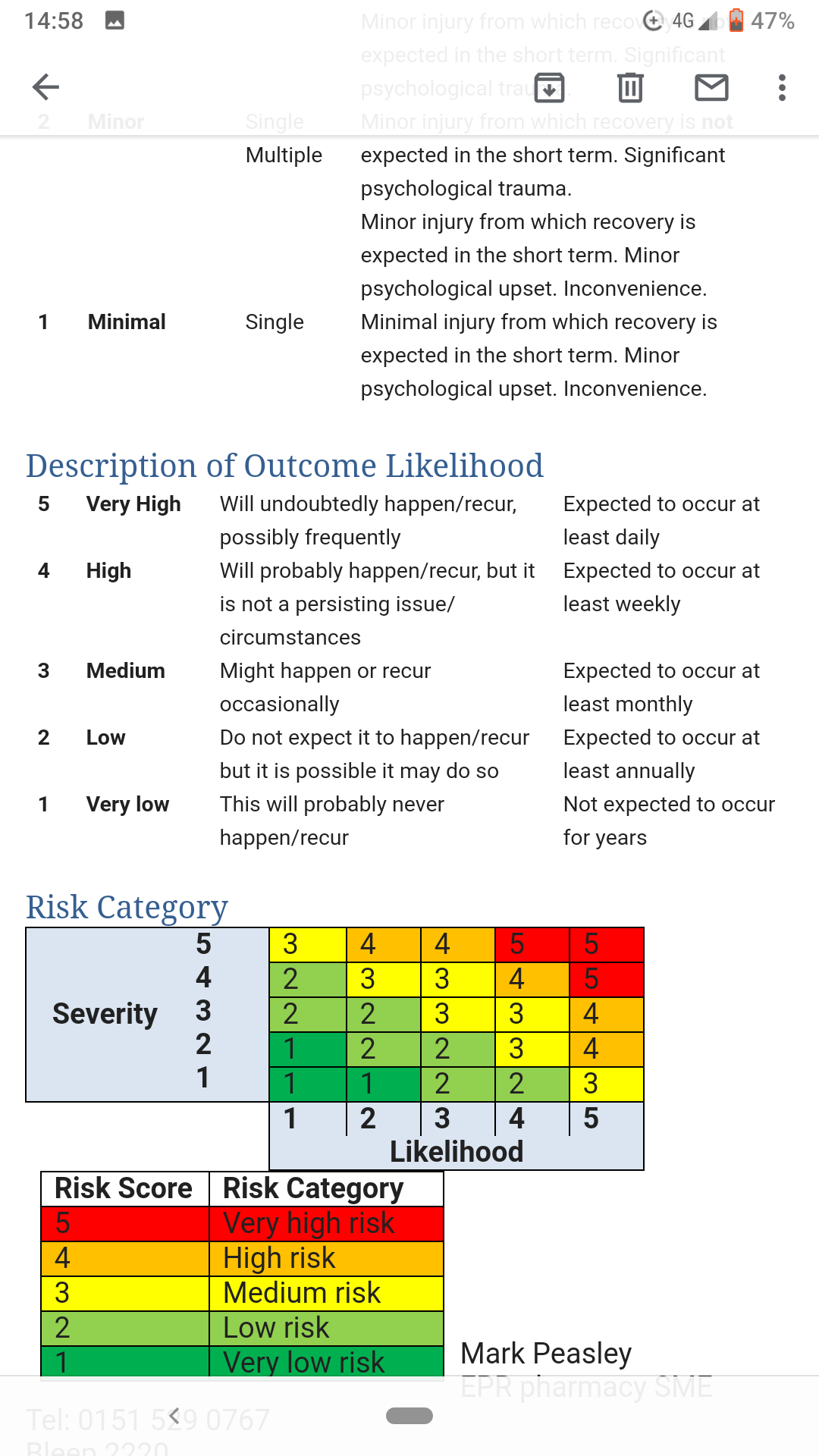 Those two numbers were multiplied to give the risk score. There were different required levels of action for each tier of Risk scores.