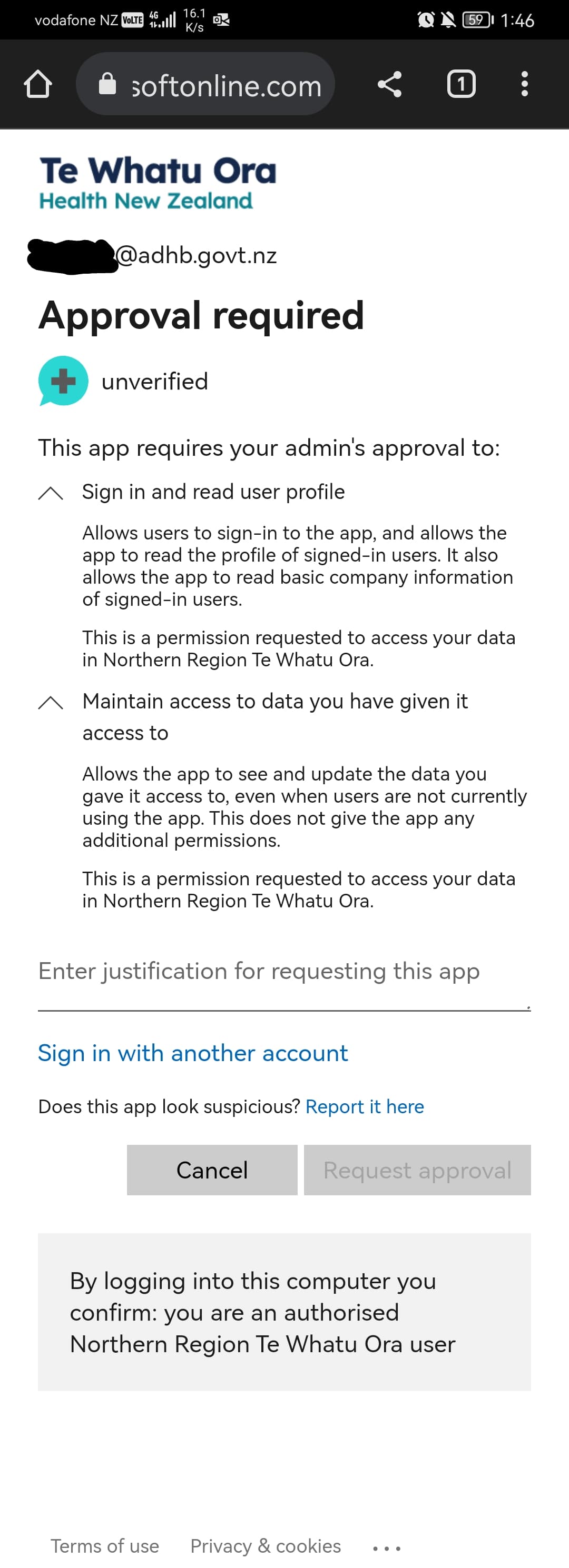 A user has alerted me to this error message which has arisen when trying to use their Te Whatu Ora Microsoft account in order to log into the eHealth Forum: