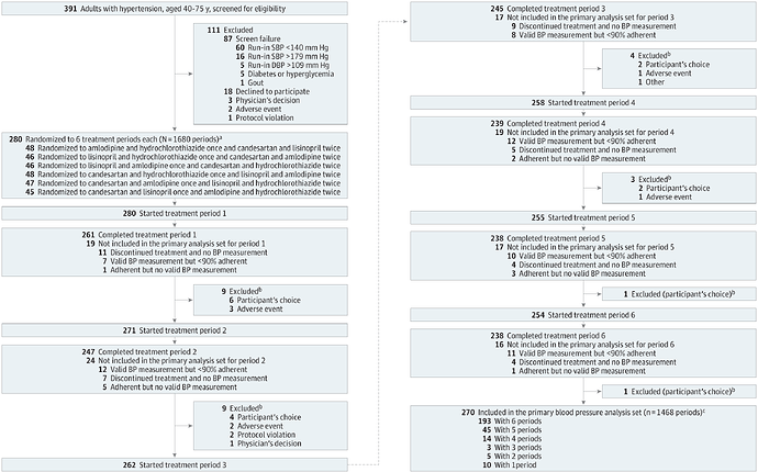 Does it really at 4.4 mmHg? I would love to see the effect size calculations, but I can’t quickly find the full paper. I also would love to know what they mean by “Large differences were excluded for the choices of lisinopril vs candesartan and hydrochlorothiazide vs amlodipine.” This study’s endpoints are also short-term and only related to BP. What of the medium or long-term implications for drug choice for renal, cerebrovascular or cardiac disease endpoints?