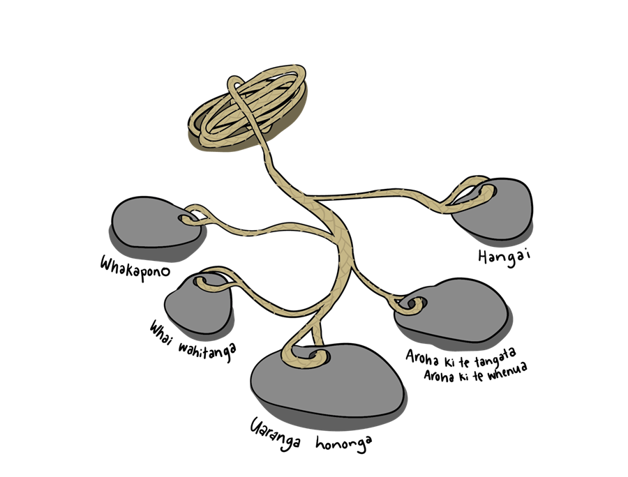 “The proposed anchor stones will hold us steady but also give us flexibility – we can pull in the anchor stones and move our waka to a different area, changing our direction when needed. The anchor stones also allow us to adapt to the changing environment and be responsive. Depending on what we need to achieve our goal, we can select anchor stones that suit who we are working with and what we want to create together.”