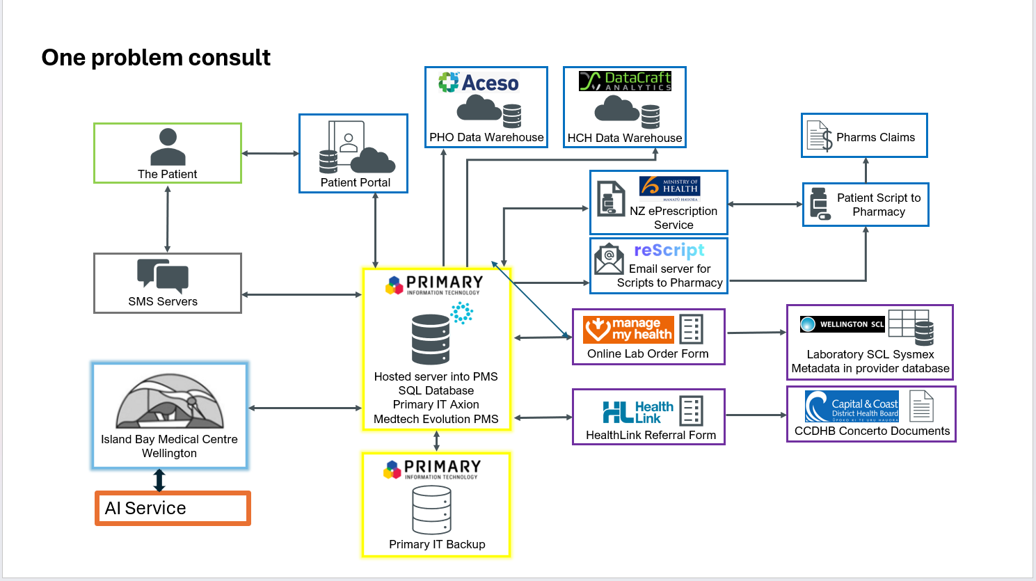 Here’s information flow from a single-issue GP consult. Probably missing stuff. No ACC in that one, the place that still emails request for patient info via email, and has had breaches