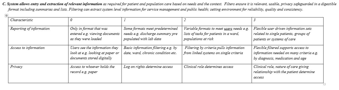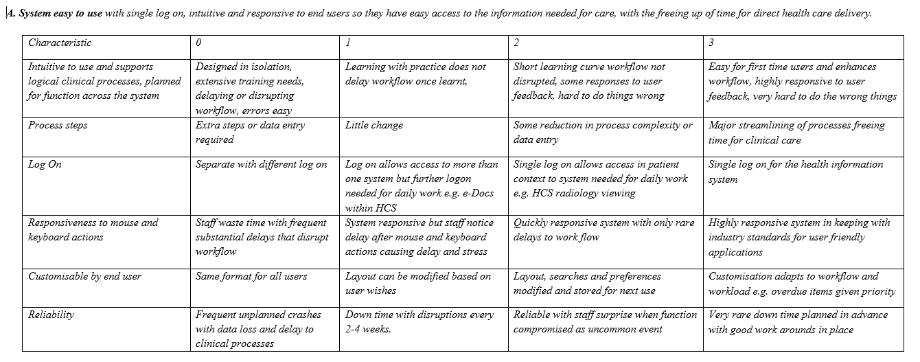 The scoring matrix below provides a checklist to help identify issues in any new software solution proposed for implementation and allows the tracking over time of improvements in usability and interoperability. If systems perform poorly with regard to usability and interoperability they should not be implemented until the issues have been addressed.