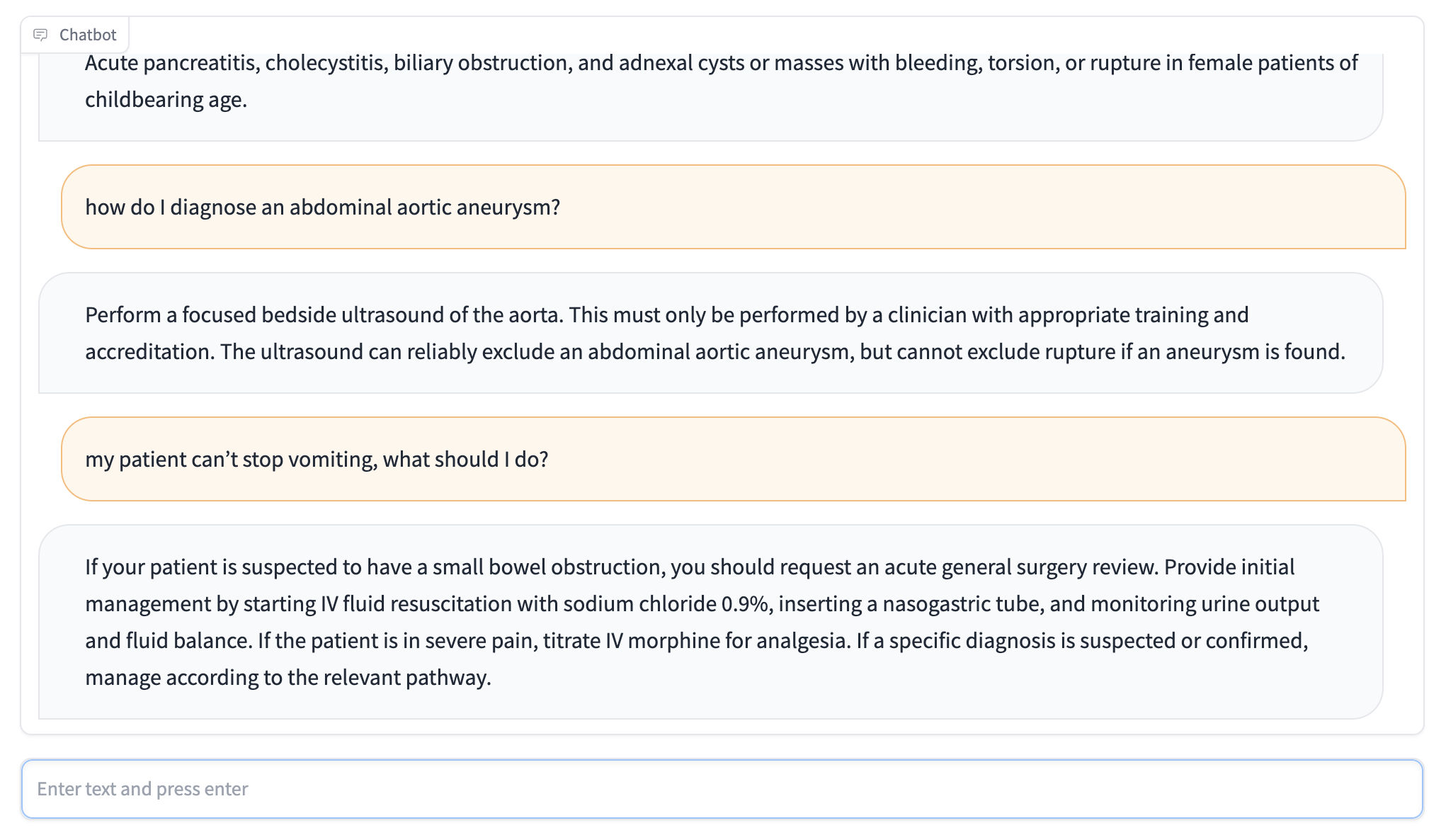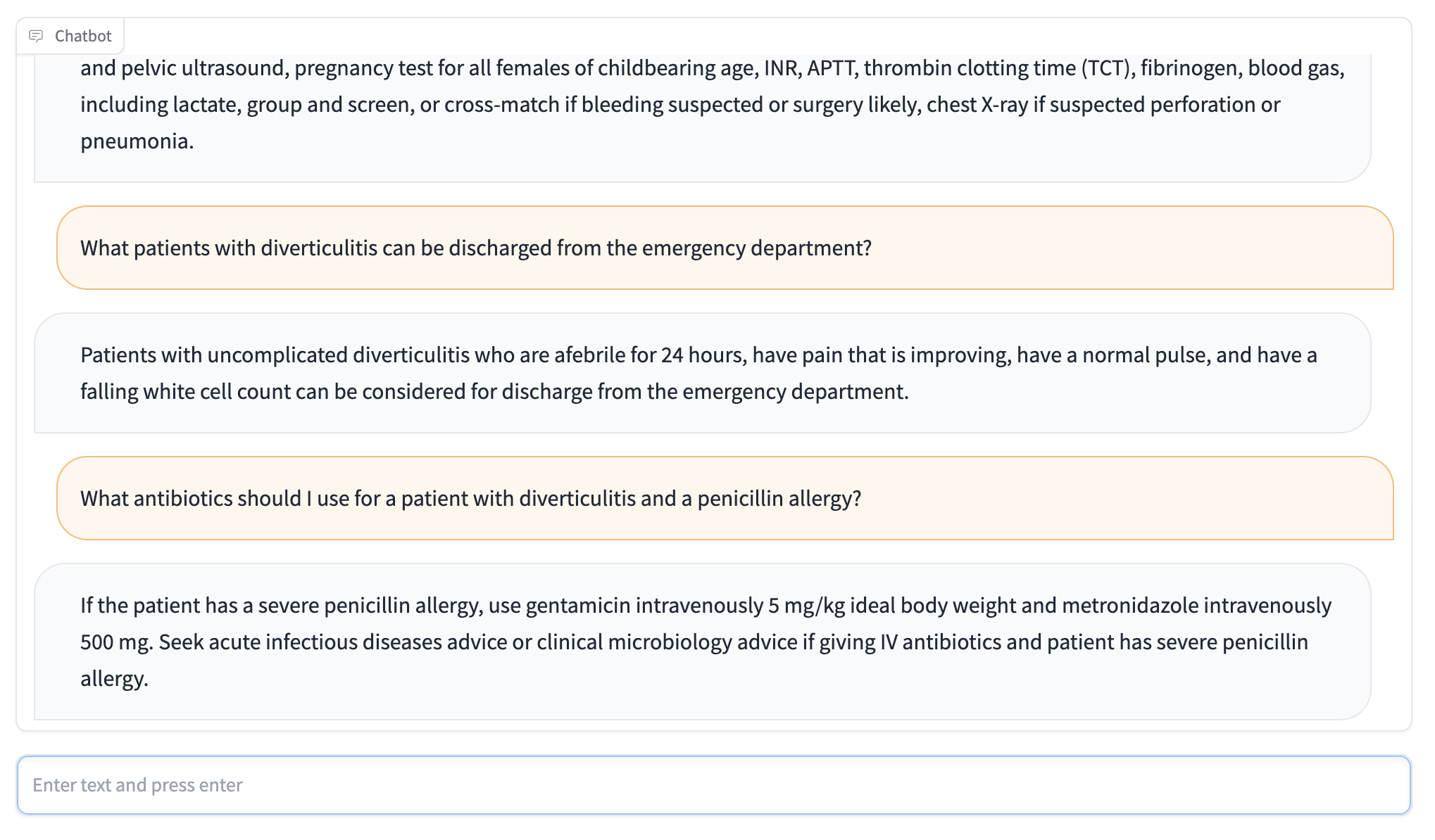 While the debate rages on regarding the use cases and appropriateness of the various commercial LLM products, I did quite enjoy spending a few hours setting up my own chat instance and using langchain to embed my own content β in this case, a few pages from our Hospital HealthPathways into a transient index.
