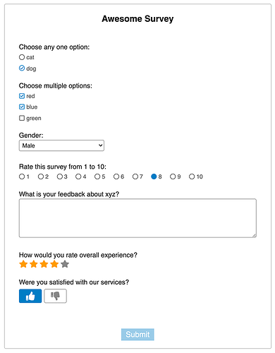 - Simple selection questions (single or multiple choice)