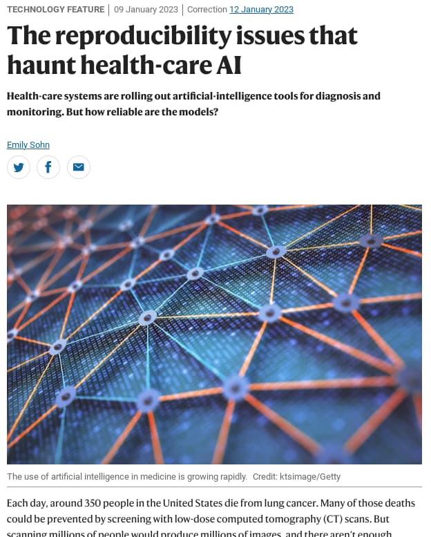Another good article talking about the quality and reproducibility issues of AI in healthcare.